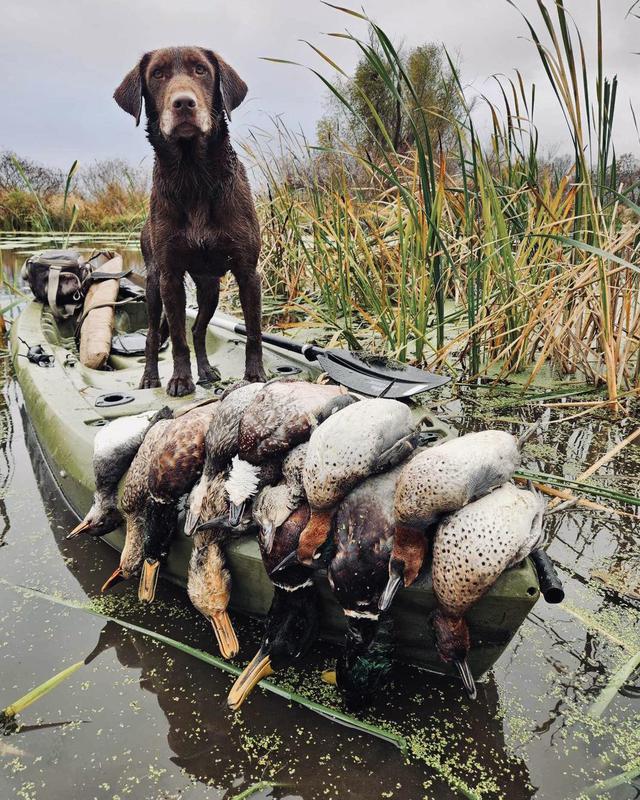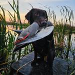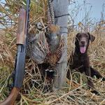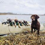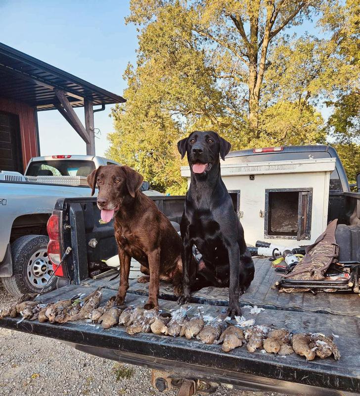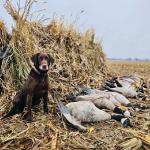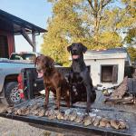 Bailey is a stylish chocolate female who is a lovely balance of intense drive and sensible disposition. She is Luke's dog and picks up a ton of ducks, geese, doves, and of course a few pheasants each season.