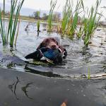 She is a solid marking dog, who lines and handles well. She is an excellent swimmer and doesn't shy away from breaking ice on a retrieve.